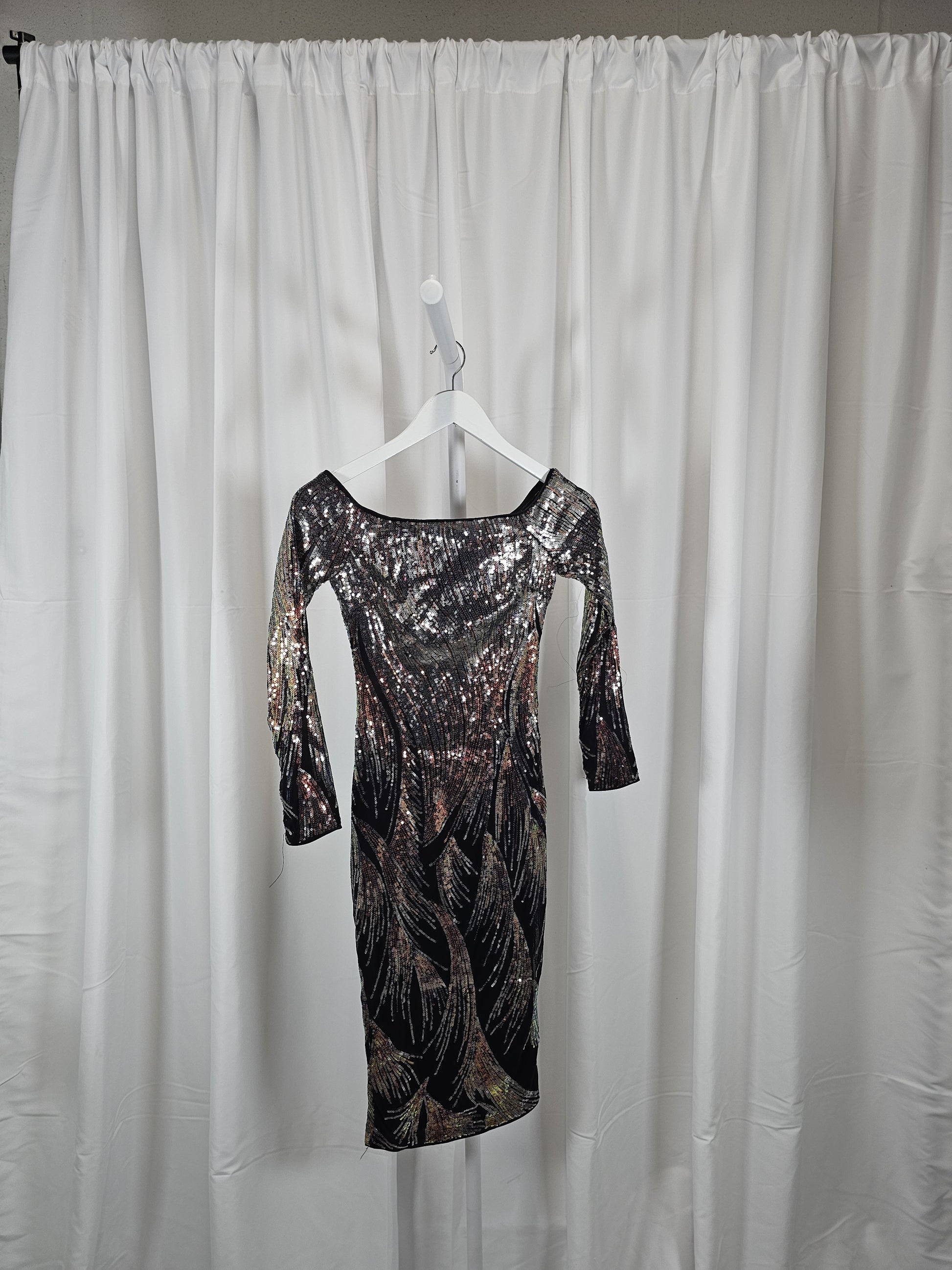 Step into the spotlight with this captivating sequined dress that shimmers brighter than your ex's excuses for ghosting! With an elegant off-shoulder design and ¾ sleeves, you'll feel like the life of the party—or at least the most fabulous person in the room. The intricate patterns are designed to catch every eye, whether you're twirling on the dance floor or pretending to sip your drink while you strategize your next move. Its snug fit hugs your curves in all the right places, ensuring you not only look good but feel confident. Plus, it’s practically guilt-free—because calories can’t count when you’re serving looks! Get ready to shine, sparkle, and conquer the night with effortless charm—just remember to bring your best dance moves!