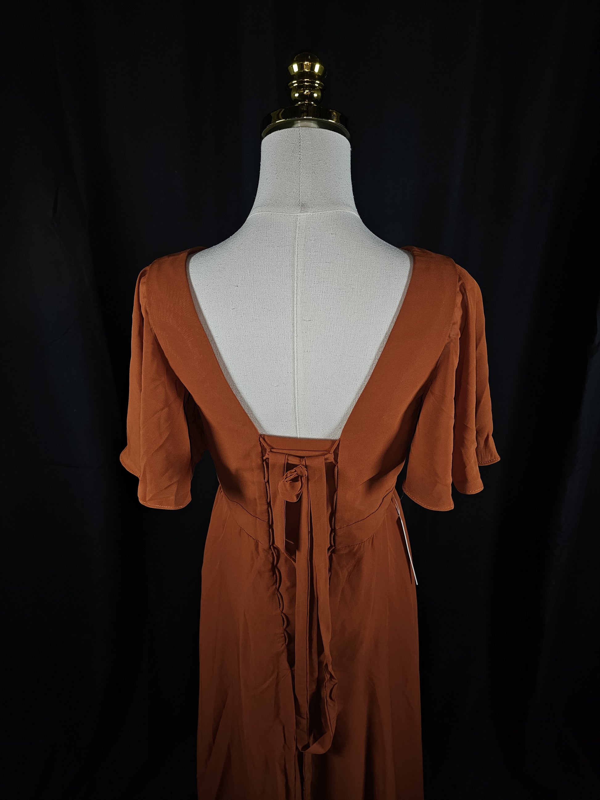 Meet your new wardrobe hero—the Sunset Serenade Maxi Dress! Perfect for those "I have nothing to wear" moments, this enchanting piece wraps you in effortless elegance. With its flowing skirt and flutter sleeves, you'll feel like you just stepped off a rooftop garden party in Santorini, even if you're only headed to the grocery store. The warm orange hue has been scientifically proven to make you stand out in every social media feed (okay, we just made that up, but it sounds good, right?). Pair it with some chic sandals or strappy heels, and voilà! Instant showstopper, no red carpet required. So why wait? Slip into something stunning and prepare to receive compliments from friends, family, and even the neighbor’s cat!