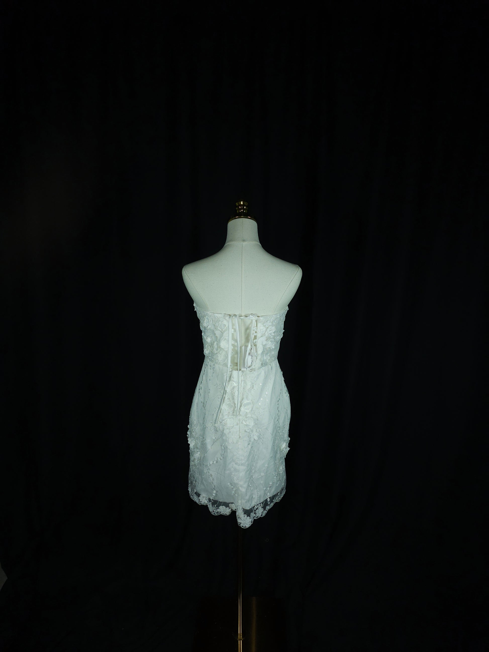 Step into a fairy tale with our Whimsical White Lace Dream Wedding/Reception Dress! This enchanting piece is perfect for twirling at outdoor weddings, dancing at summer festivals, or simply when you want to feel like a cinematic goddess. With a design that's flirtatiously short in the front and flowy in the back, you'll have everyone wondering if you just floated in from a cloud. Plus, the delicate lace details are just the right amount of romantic to make you feel like you should be sipping tea with a unicorn! Pair it with your snazziest sandals or your favorite sneakers, and you're ready to strut your stuff—no magic wand required. Grab yours now and let the compliments roll in like butterflies at a picnic!