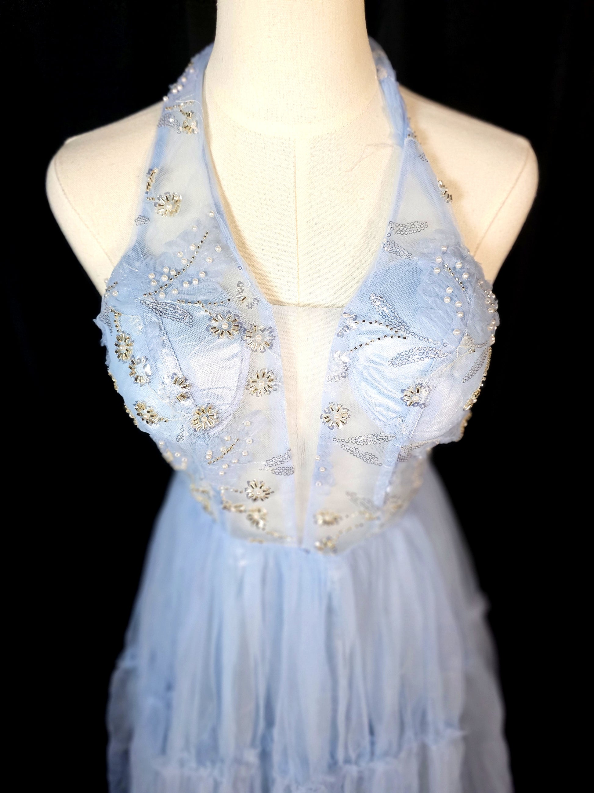 Get ready to turn heads at every gathering with our Celestial Charm dress! Made from heavenly blue tulle and adorned with sparkling embellishments, this masterpiece is like wearing a piece of the night sky. You’ll look so stellar that even constellations might get jealous! Designed to highlight your best features while ensuring you can twirl without a worry, it's perfect for dancing the night away or simply feeling fabulous while sipping on your favorite drink. Wear it to parties, weddings, or anywhere you want to shine brighter than a shooting star. Just a word of advice: beware of meteor showers—you're bound to steal the spotlight!