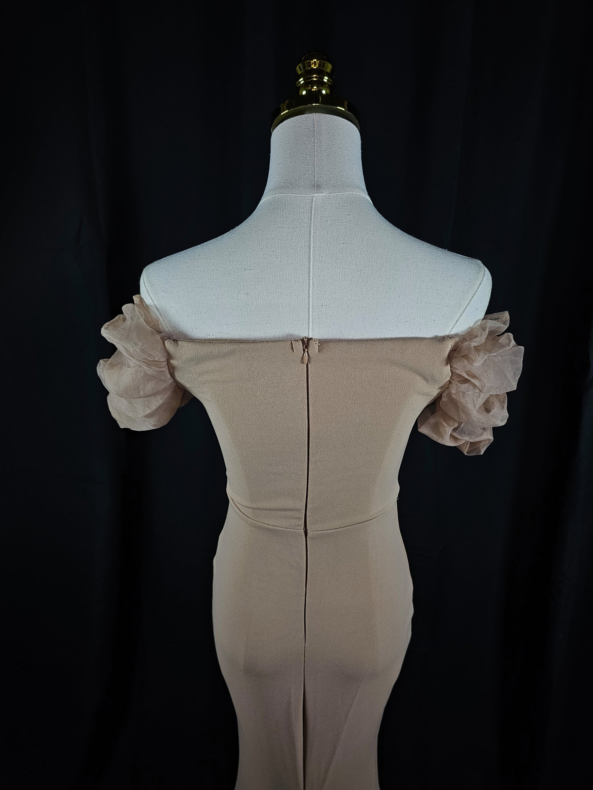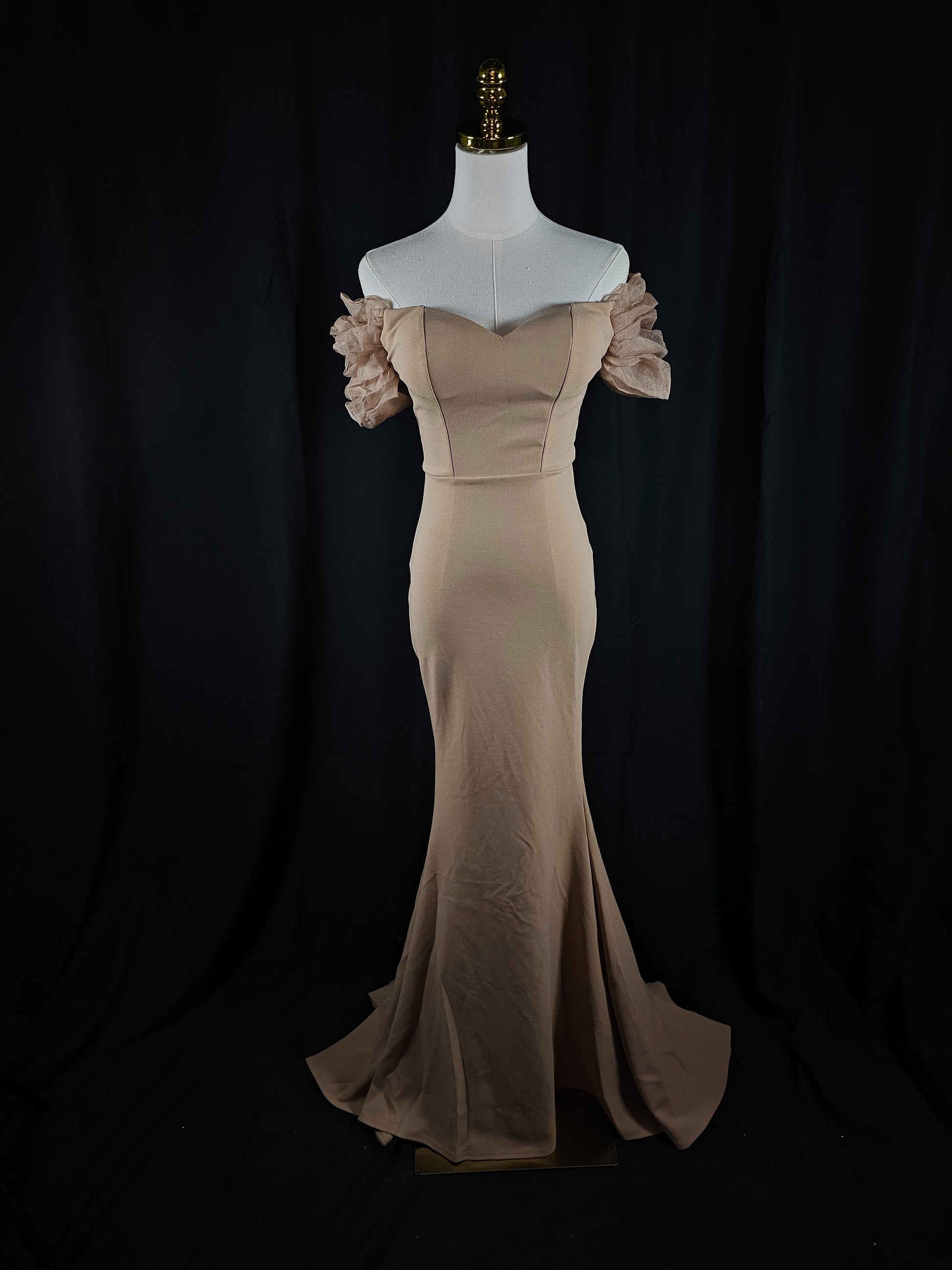 Chic Mirage: Flirty Off-Shoulder Goddess Gown