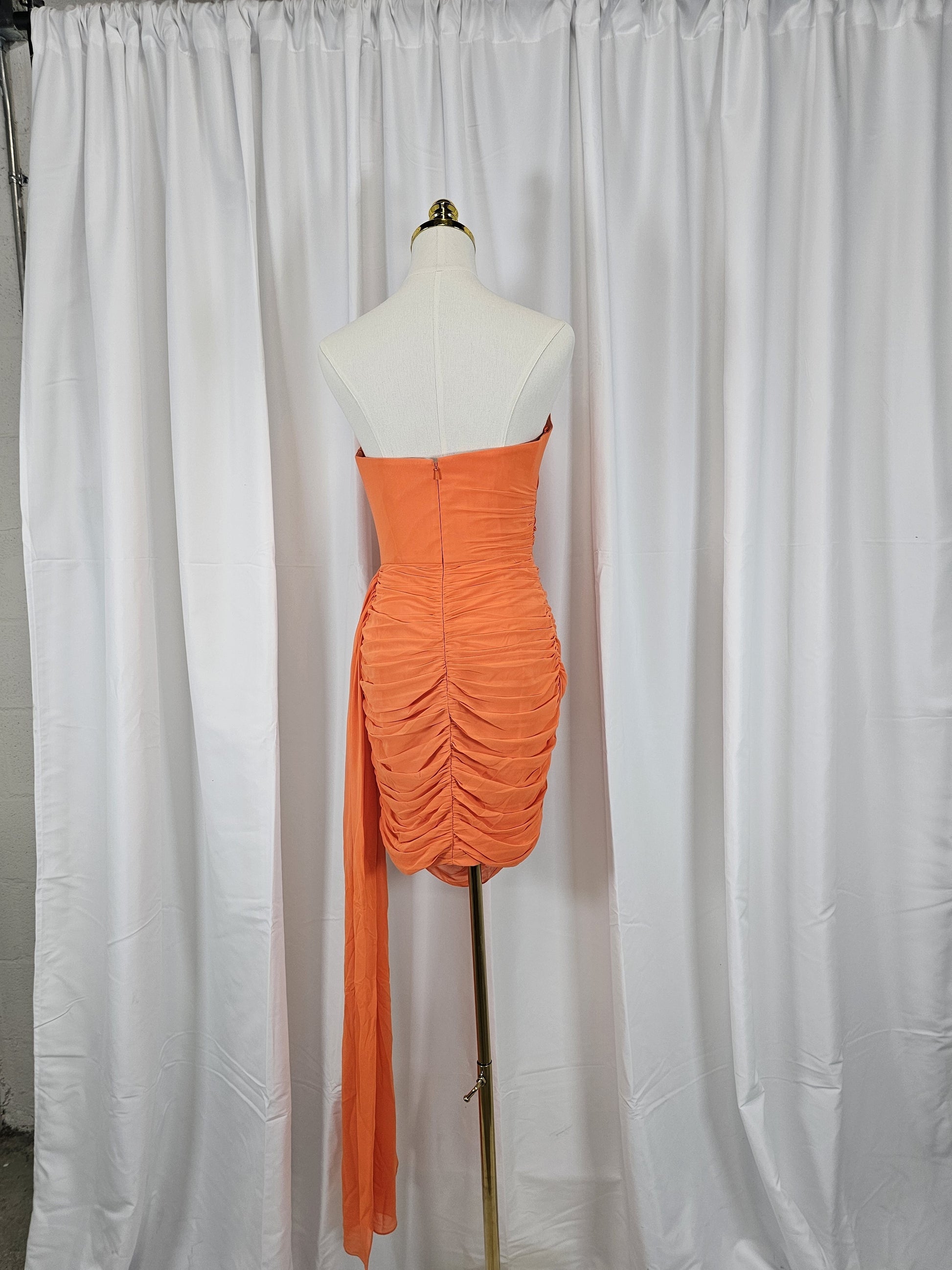 Turn heads and light up the room in our Sunset Sizzle dress! This stunning number is designed for those who aren't afraid to stand out—in vibrant orange, it's as bold as your personality. The draped side detailing gives it that sultry fairy-tale vibe, while the strapless cut ensures it’s all about those fabulous shoulders you’ve been working on at the gym (or while reaching for another slice of pizza—no judgement here!). Perfect for cocktail parties, beach weddings, or just strutting around your living room, you'll feel like the main character no matter where you are. Pair it with some chunky heels and a confident strut, and watch as the compliments start rolling in. Pro tip: avoid any orange juice spills; it might be too on-the-nose!