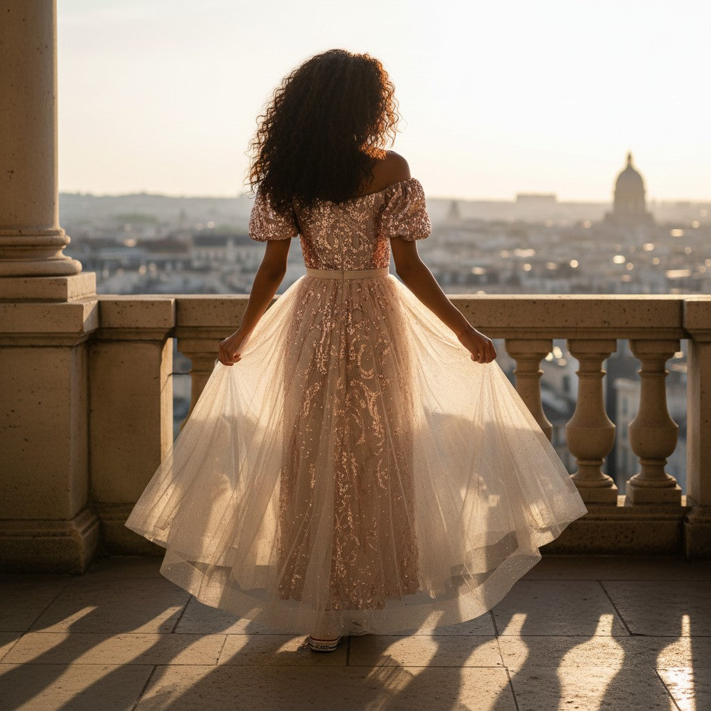 But beware; with great sparkle comes great attention! Be prepared for an influx of compliments and possible spontaneous dance-offs as you bring the party to life. Just a little heads-up: the dress may require some steaming upon arrival, especially the satin and tulle elements to ensure it’s picture-perfect.